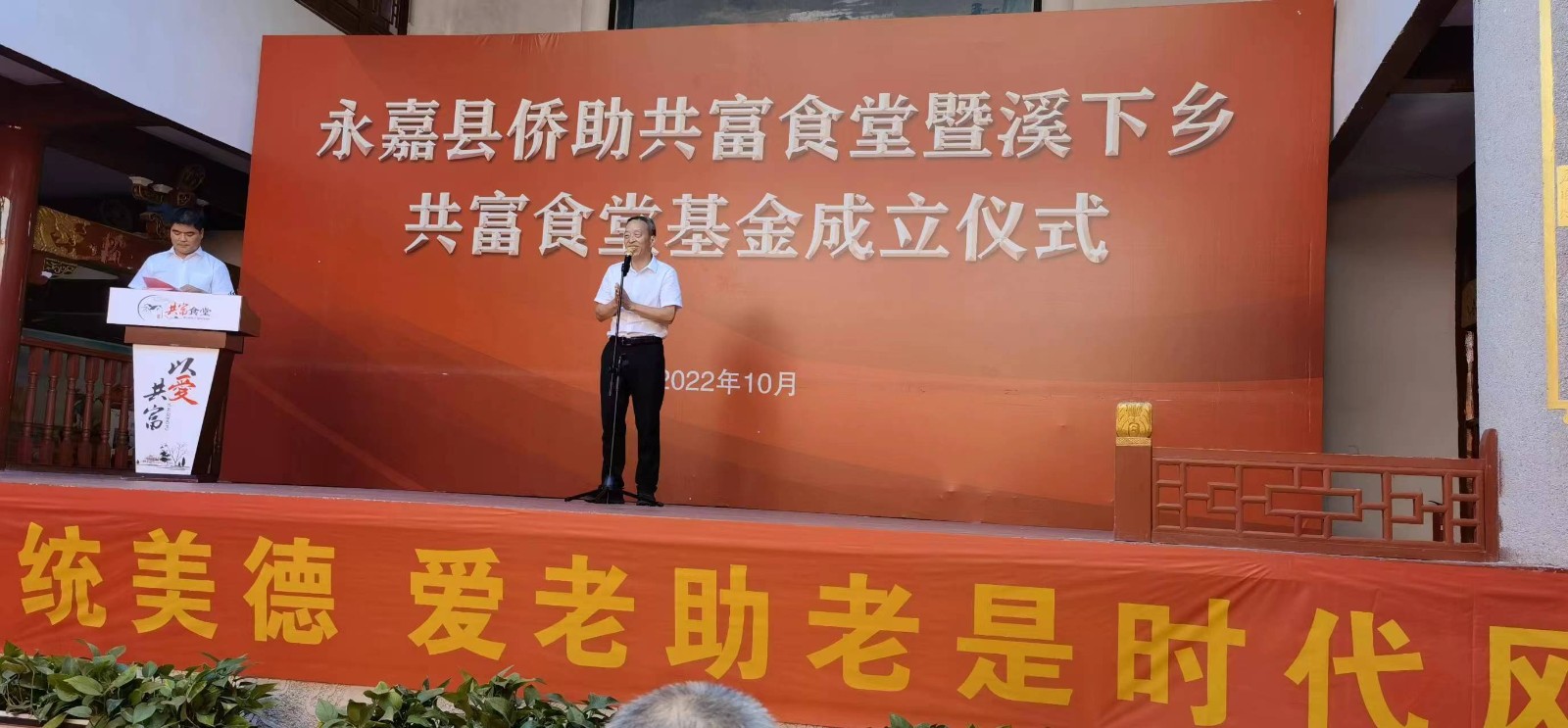 2022年10月2日上午,永嘉侨助共富食堂暨溪下乡共富食堂基金成立仪式在溪下乡邵金村举行,侨界代表、企业家慷慨解囊,助力共富食堂品牌建设。